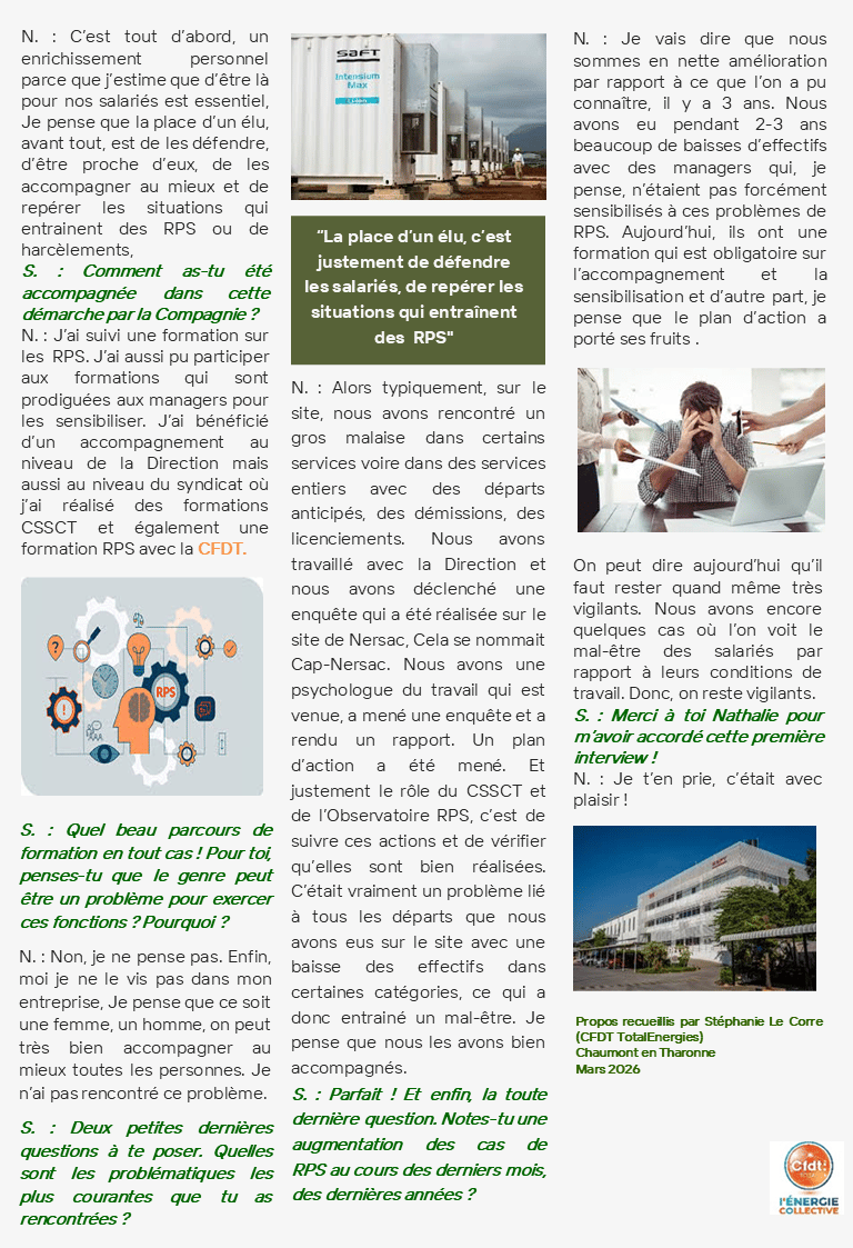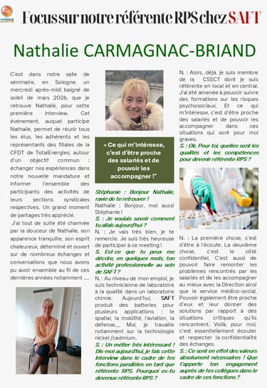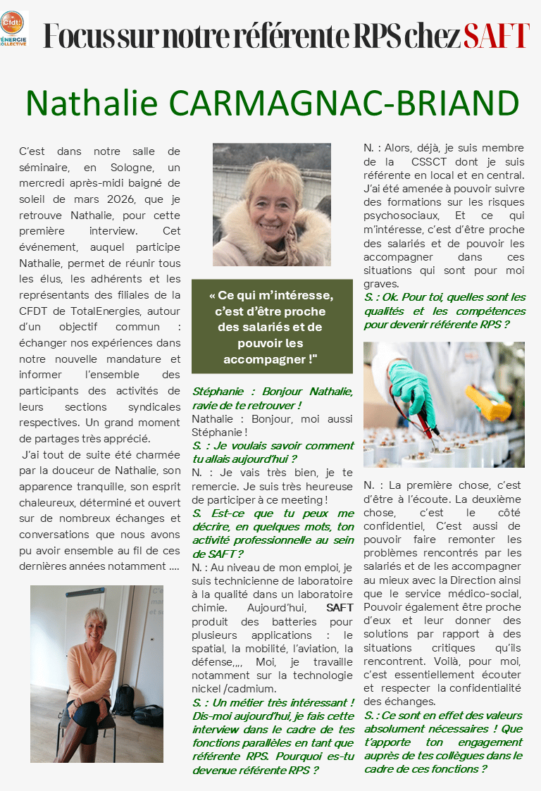 Etre élue CFDT(chez SAFT) et référente RPS, une vocation !