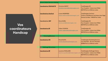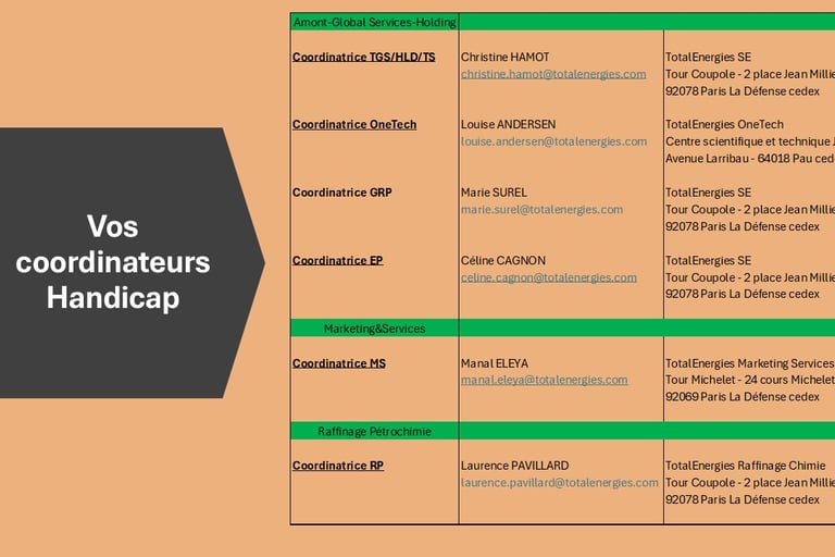 Vos coordinateurs Handicap ne sont pas acteurs de la CFDT TotalEnergies, néanmoins, ils restent à votre écoute et peuvent vous orienter :